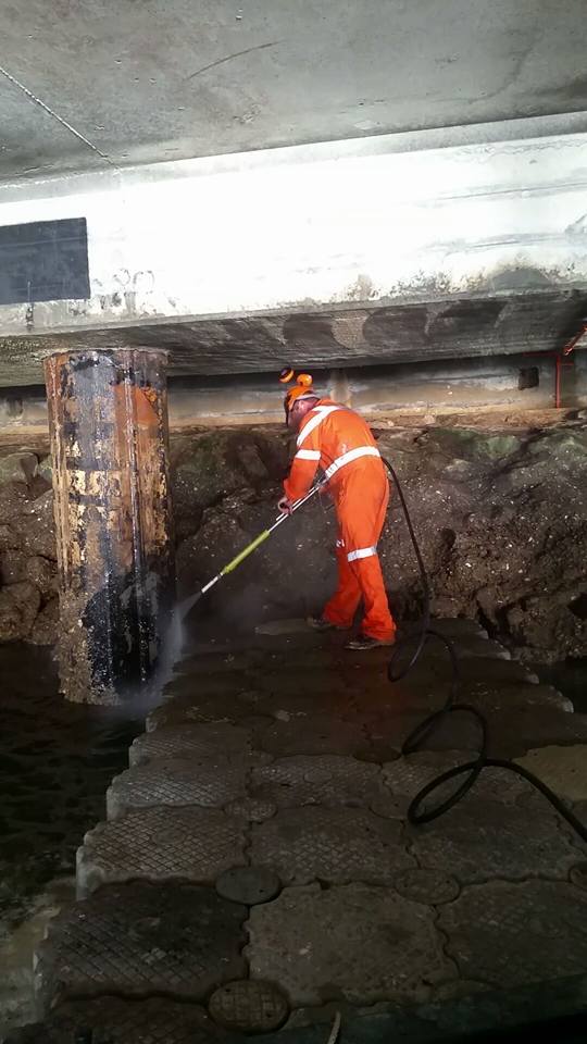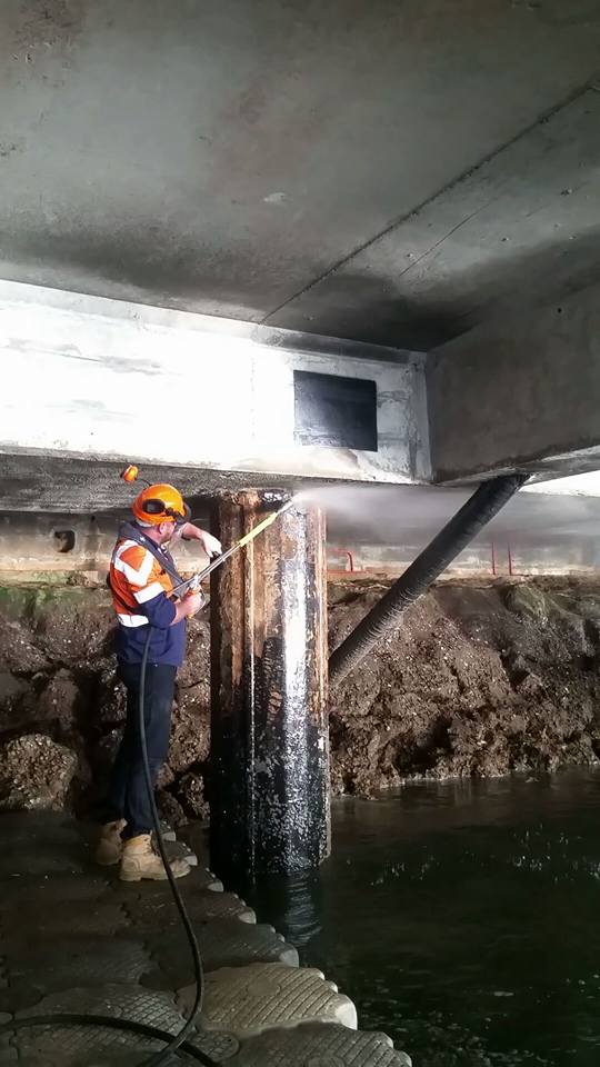 Out on the Brisbane River demonstrating our CD50-1000 14,500psi @ 20L/min with our customer. Loaded the unit onboard a pontoon and up the river we went. Cleaning the pilons under the main wharf doing a fantastic job.